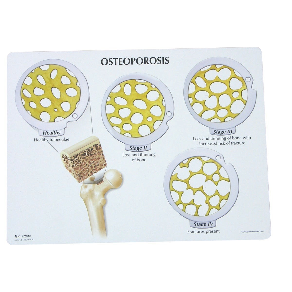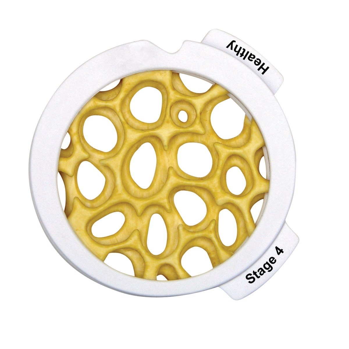 Комплект дисков по раку кости: увеличенные поперечные сечения кости, показывающие прогрессирующее истончение костных перекладин, имеющее место при остеопорозе.