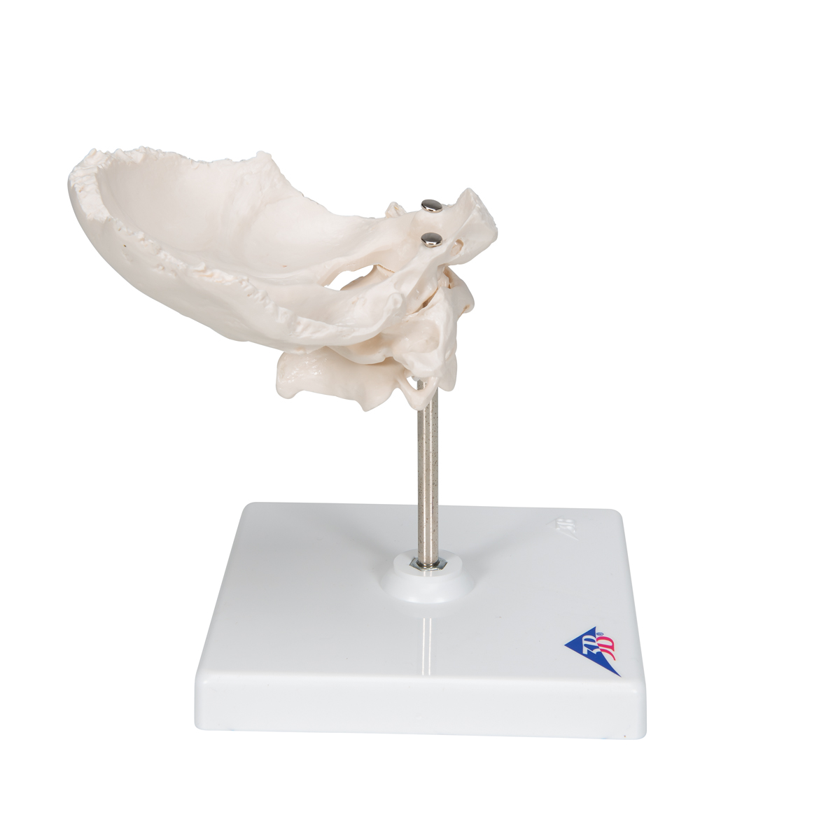 Первый и второй шейные позвонки с затылочной костью, в сборе. На подставке.