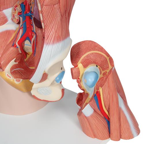 Правая половина воспроизводит кожный покров, левая половина – поверхностные и более глубокие мышцы с нервами, сосудами и костными структурами.